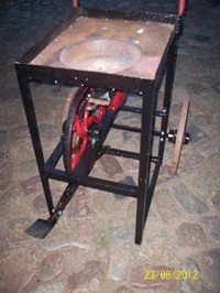 Zur Erleichterung sollte die Feldschmiede mit einem Motor sowie einer Drehzahlregelung ausgerüstet werden. Der Pedalantrieb sollte aber erhalten bleiben und bei Bedarf benutzt werden.